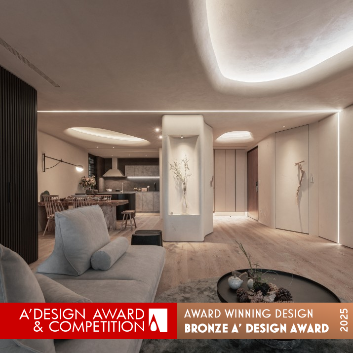CHALLENGE: By grasping the spatial scale and applying the wabi-sabi style, communication with the owners is a very important link in the overall planning process. From needs and material selection to circulation planning and lighting considerations, the design team uses its professional knowledge to provide the owner with the most suitable design plan, and then carries out engineering construction according to the various designs on the drawing, mastering each division of labor and process, and finally Presenting the most ideal and unique living residence