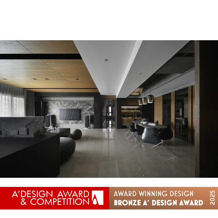 RESEARCH ABSTRACT: The name, "Cornerstone: Tranquility", comes from the fact that there are many different expressions in a dark-colored space. The designer likened the dark space to a country, with each site being a border. In the social area, for example, black and artistic paints enhance the contrast and achieve a unique textural layering effect. This planning reflects the client's pursuit of aesthetics and gives the space a unique atmosphere and depth of field. The visual construction is not complicated and shapes the dynamics of mobility and layers according to the lifestyle.