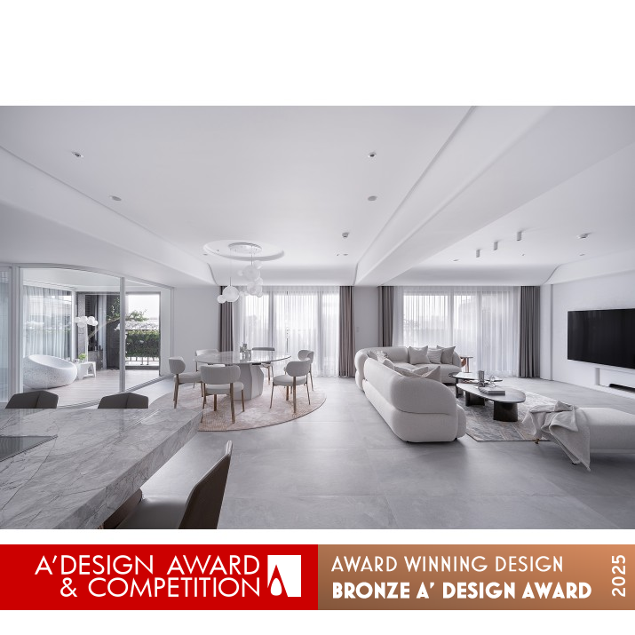 INSPIRATION: The inspiration came from the owner's preference for white. The designer used this as the main color, and with the expansive view of the mountains (or clouds and mists) from the windows, he incorporated natural elements into the interior. With a deeper understanding of the owner's lifestyle, the designer realized his connection with music. The project incorporates the rhythm of curves. Each space is connected by curves yet independent from the other, just like the chapters of a concert, presenting them sequentially for the visual and auditory enjoyment of the people.