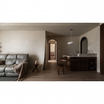 CHALLENGE: The wabi-sabi style has a wide range of expressions. The designer needed to strike a balance between grandeur, beauty, and art. After repeated communication and coordination, the design meets the needs of the living space but does not become overly artistic. In terms of spatial proportion and layout adjustment, the designer removed the bathroom compartment and enlarged it. The change involved rearranging the piping, and the designer needed to precisely balance the proportions to ensure the functionality and comfort of each area.