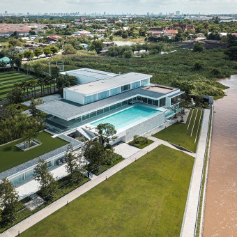 INSPIRATION: The River House is situated in Pathum Thani province, just north of Bangkok. This property boasts a stunning location with panoramic views of the scenic bend of the Chao Phraya River, Thailand's largest river. The bedrooms and living areas are strategically positioned to maximize enjoyment of the breathtaking surroundings, while a large swimming pool offers the perfect spot to cool off. The open-plan design features uninterrupted views, with expansive sliding doors that seamlessly connect the terrace and infinity pool to the river, creating a harmonious blend of indoor and outdoor living spaces.