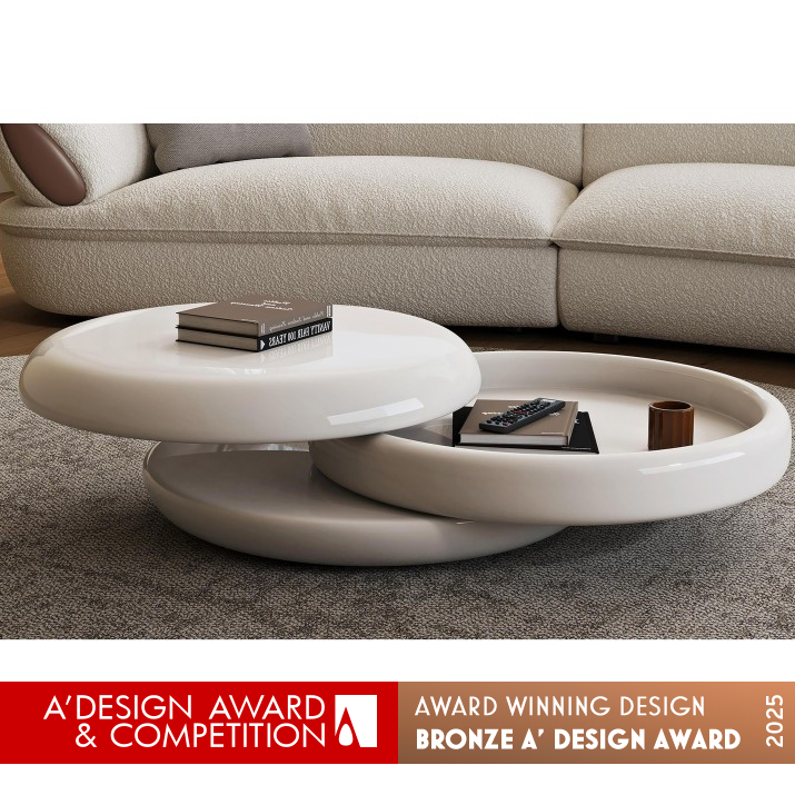 UNIQUE PROPERTIES / PROJECT DESCRIPTION: The Macaroon Tea Table features a three-layer rotatable structure. When the three layers are stacked, the middle layer can hold items. When they are stretched out, it can serve as a two-layer table. This tea table can therefore be used in a variety of scenarios. The rounded shape and sleek lines make it both aesthetically pleasing and safe.