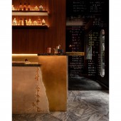 UNIQUE PROPERTIES / PROJECT DESCRIPTION: A handcrafted concrete bar counter was designed as the core element of the entire space. After the concrete was poured, the owner was invited to participate in the chiseling process, deepening the connection between the owner, the customers, and the space itself. The bar is surrounded by untreated copper plates and raw walnut veneer, which will change in appearance over time. This symbolizes the unique culture of Tainan, shaped by historical changes and evolution.