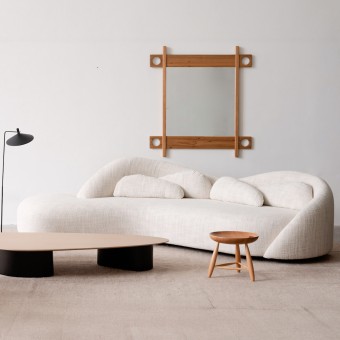 UNIQUE PROPERTIES / PROJECT DESCRIPTION: Accompanied by four decorative cushions, the sofa not only offers a custom fit for comfort, but also allows for aesthetic customization, allowing each owner to tailor it to their taste. The Corcovado Sofa transcends the traditional notion of furniture, presenting itself as an element of connection between environments and people, between functionality and sculpture.