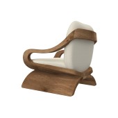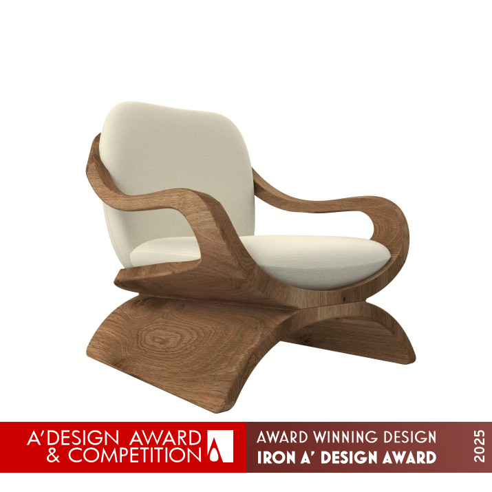 PRODUCTION / REALIZATION TECHNOLOGY: My lounge chair concept combines traditional craftsmanship with modern production techniques. Made from sustainably sourced solid wood, it features flowing curves achieved through steam bending, enhancing both comfort and visual lightness. The design process focused on minimizing material waste while exploring how to balance rustic textures with contemporary forms. CNC machining ensures precision, while hand-finishing adds warmth, creating a timeless piece suited for any modern interior.