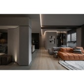 INSPIRATION: The site is a new apartment. The overall design is based on the theme of calmness, to convey depth and privacy. The designers conveyed the core concept through inversion and subtlety in an attempt to create a design with depth and layers. In a dark modern space, the connections between areas create depth of field and position the function and role of 'home'. The project emphasizes the interaction and communication between family members and achieves a design that is both modern and fulfills the needs of family living.