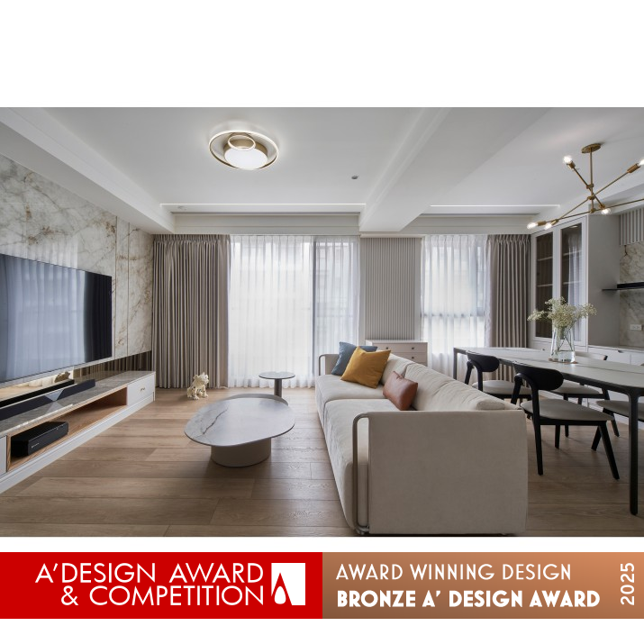 I am deeply impressed by the exceptional sophistication and thoughtful harmony presented in Chiun Ju Interior Design's award-winning work "Framed Time." The meticulous integration of neo-classical symmetry, combined with the elegant balance between dark tones and delicate natural lighting, demonstrates an extraordinary understanding of refined interior aesthetics. I particularly admire how the design team masterfully unified the dining room and TV wall in an open plan, cultivating a boutique-like atmosphere that exudes luxury and serenity simultaneously. Furthermore, the brilliant use of openwork to frame natural light and shadow truly elevates the ambiance, creating a sense of depth and elegance within a compact space. Chiun Ju Interior Design's thoughtful attention to the client's preferences and the strategic reshaping of the layout showcase a remarkable sensitivity and creativity that truly deserve recognition with the prestigious A' Design Award.
