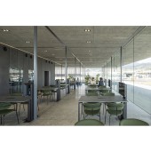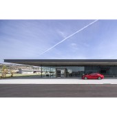 PRODUCTION / REALIZATION TECHNOLOGY: To enhance energy efficiency, three sides of the building, except the west, are fully glazed. The steel columns are reduced to a minimal 75millimeter square solid steel, creating a seamless connection between the townscape and activities such as vehicle deliveries and viewings under the 4m cantilevered eaves, as well as negotiations inside. The combination of the thick roof and slim columns emphasizes the roof's surface, creating a delicate and tense atmosphere.