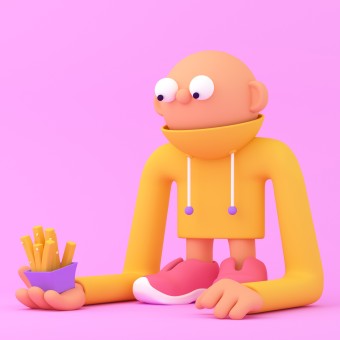 PRODUCTION / REALIZATION TECHNOLOGY: This set of illustrations uses 3D modeling technology, with the help of C4D to build models of cartoon characters and food, set proportions, and shapes. In the early design stage, collect inspiration, study popular cartoon styles and audience preferences, and determine the direction of high-saturation colors and simple and exaggerated shapes. Arranging light sources, enhance visual impact and artistic appeal. Use Octane renderer to render high-quality artworks.