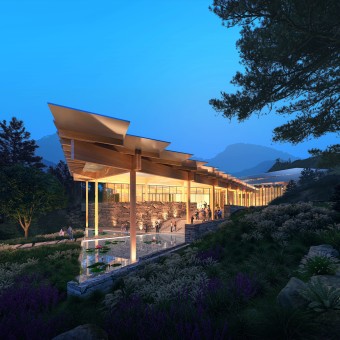UNIQUE PROPERTIES / PROJECT DESCRIPTION: This design, inspired by Confucius' appreciation of mountains and water, merges with Shandong's terraced landscapes and waterways. The "Crevice" concept, embodying mountainous terrain with giant triangles and fluid waterways, harmonizes with the environment as a natural earth extension. It reinterprets ancient culture contemporarily. This approach shapes visitor experiences, encouraging a dialogue with the space and guiding them towards a culture of inner peace.