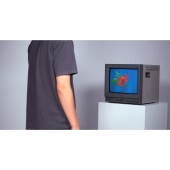 PRODUCTION / REALIZATION TECHNOLOGY: The design integrates a ToF (time-of-flight) sensor to detect the viewer's presence. Sensor data is processed by a microcontroller, which communicates with TouchDesigner, an interactive visual application running on a computer. TouchDesigner triggers the video content based on the input, which is then displayed on a CRT TV. This workflow combines precision sensing with dynamic visuals to create an engaging, responsive experience.