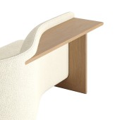 OPERATION / FLOW / INTERACTION: Baia is designed to adapt to different ways of living. You can lounge comfortably in the spacious, curved corner perfect for stretching out, sitting cross-legged, or cuddling. The narrower seating area is ideal for shorter, more upright interactions. The built-in oak desk behind the backrest serves as a home office, side table, or display shelf, effortlessly blending work and relaxation in one cohesive design.