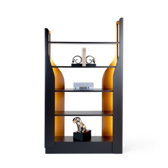 Integrated Led strips evoke the era’s lively ambiance, creating warm, soft color transitions that add depth and allure to both the product and its surroundings. This interplay of light and form transforms the bookcase into more than just a storage unit it becomes an artistic statement within a space.