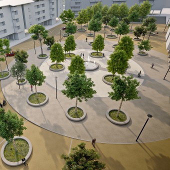 UNIQUE PROPERTIES / PROJECT DESCRIPTION: The dilapidation of the built space in the future square and the neglect of the natural space in the Speranza park reflect the current state of the intervention area. The aim is to redevelop the area, restoring dignity and value to the 60s and 70s Pescara housing, with the design of a square and the restyling of the existing park. At the centre of the square, in the shape of concentric circles, a fountain as a beating heart, surrounded by trees, including native species, that change with the seasons. While the restoration of the park aims to develop a green lung, making it a visiting card.
