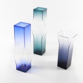 INSPIRATION: In the space, the series of collection seem like a planar art painting. Sometimes like a three -dimensional sculpture artwork. With the visual perspective, the form of the artwork is switched between 2D and 3D. After the gradient transparent plate is treated, the structure and shape of the vase are blurred, and the gradient color is from deep to light to colorless transparency, Vase collection are creating a mysterious expressiveness.