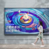 INSPIRATION: This design is inspired by Tencent's recruitment slogan, "Join Tencent. impact the world." The figure represents "you", while the central sphere symbolizes 'the world.' The ripples signify the expanding influence and broadened horizons of individuals in the digital age, illustrating how one’s impact can extend globally with Tencent’s support. This proposal combines futuristic aesthetics, gamification elements, and dynamic design to create a highly engaging and memorable brand experience.