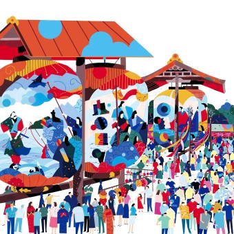 INSPIRATION: This project was created as an information tool that can be placed in the storefronts of Shinkin banks nationwide and can be freely taken home. It is also an information magazine based on the concept of "shinkumi," which energizes people and cities. The theme of the issue for which she was asked to illustrate was Hiroshima Summer. She created an illustration based on the theme of the Itsukushima Shrine Orchestra Festival, which energizes people and cities.