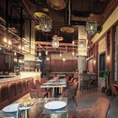 UNIQUE PROPERTIES / PROJECT DESCRIPTION: The major design approach revolves around creating a dynamic contrast between raw, exposed materials and polished, luxury elements to foster a distinctive and immersive dining experience. This duality is achieved by incorporating a variety of textures and finishes, where the rugged, industrial appeal of polished concrete, steel, and cladding stone comes together with the warmth and elegance of finely crafted woodwork. These raw materials, with their natural imperfections and tactile qualities, evoke a sense of authenticity and grounded simplicity, establishing a foundation of earthy and bold aesthetics.