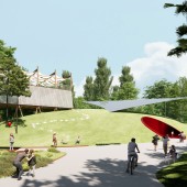 PRODUCTION / REALIZATION TECHNOLOGY: Pine to Sea employs lightweight timber construction, elevated steel foundations, and modular prefabrication to minimize site impact and protect the fragile pine ecosystem. The project integrates bio-based insulation, permeable surfaces, and passive cooling strategies for sustainability. Digital terrain analysis and parametric modeling optimized building placement, ensuring minimal disruption while enhancing biodiversity through reforestation, wetland restoration, and water-sensitive design.