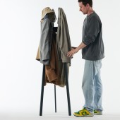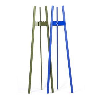 UNIQUE PROPERTIES / PROJECT DESCRIPTION: 'The more items you hang on it, the more stable it gets' - is the main statement regarding this item. Coat hangers very often have stability issues; jackets, coats, sweaters etc. are leaning the hanger. In Axel's case, while designing, we used gravity as an ally - to help us keep the tall hanger centered using its mid axis. Axel is a high quality product. Made only by two elements; a steel joint and a massive wood leg. Multiplied by three. Easy to repair since it's hand built.