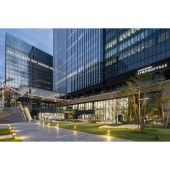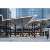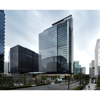 PRODUCTION / REALIZATION TECHNOLOGY: The multi-layered plaza was planned using simulations for wind, sunlight, and pedestrian flow to optimize each space for its intended use. The large glass roofs adjust the environment of semi-outdoor spaces.For the office areas, solar simulations led to the exterior wall design to achieve an optimal balance of sunlight for air conditioning and lighting efficiency. Automated control of jalousie windows and blinds further integrates environmental factors into a comfortable working environment.