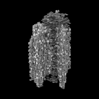 PRODUCTION / REALIZATION TECHNOLOGY: A custom generative AI model was trained from scratch using proprietary code base and dataset. Specifically, a 3D generative adversarial network (3D-GAN) AI model was trained to learn semantic and spatial configuration of high-rise high-density residential public housing in Singapore.
