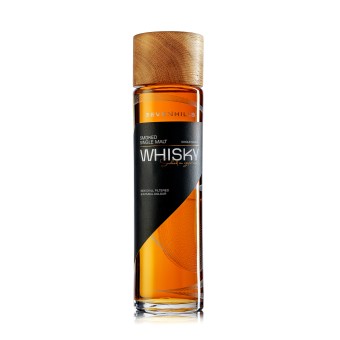 INSPIRATION: The abstract smoke pattern encircling the bottle represents the whisky’s unique smoky essence. Its black and copper tones evoke both the depth of the whisky’s flavor and the craftsmanship of pot still distillation. The handcrafted beechwood screw cap, made from the same wood as the ageing barrels, highlights the harmony between the maturation process and natural materials.