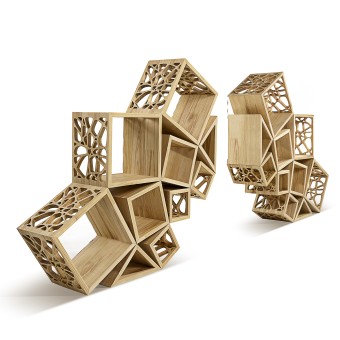 UNIQUE PROPERTIES / PROJECT DESCRIPTION: Fractal 9 is a modular sculptural furniture piece with a deep connection to the square, the golden ratio, and the number 9. Inspired by the fractal structures of nature and crafted from sustainable materials, it offers a versatile and sophisticated solution for organization and interior design.
