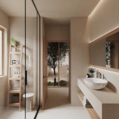 SPECIFICATIONS / TECHNICAL PROPERTIES: The Izanagi Project features subterranean villas designed for energy efficiency and minimal environmental impact. A plus energy-filtered windows with Alumil Supreme Phos and s 630 profiles ensure superior insulation. Granite tiles r 9 for indoors and r 11 for the outdoors, to waterproofing membranes, standalone A/C systems, and certification guarantee durability and sustainability.
