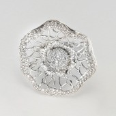 UNIQUE PROPERTIES / PROJECT DESCRIPTION: The Treasure Cell Ring stands out for its intricate cellular-inspired lattice structure, evoking the complexity and beauty found in microscopic life. Crafted from 925 sterling silver, it features 128 round melee stones and seven round-cut cubic zirconia stones, strategically placed to enhance brilliance and depth. The openwork design creates a delicate yet durable framework, striking a balance between elegance and resilience. Combining organic patterns with precise craftsmanship, this statement ring embodies strength, growth, and timeless beauty.