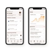 1) Home + Care Tab: A centralized hub allowing caregivers to log medications and set reminders for timely administration; track symptoms and behavioral changes over time; visualize trends and generate reports to support medical decisions.