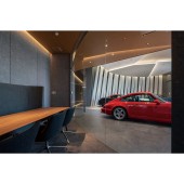 INSPIRATION: This showroom exhibits and sells luxury cars. The layout is centered around a circular exhibition space, with meeting rooms, offices, toilets, etc. arranged around it. The ceiling is high, the space is spacious, and the entire space is meticulously designed with a layout that is efficient. The cars are beautifully displayed in the space to stimulate customers' desire to buy.