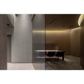 UNIQUE PROPERTIES / PROJECT DESCRIPTION: The unique design of the ceiling is noteworthy. The ceiling is divided into two levels, high and low, and the high section is made of thinly sliced panels stacked on top of each other, creating a floating feeling. Indirect lighting shines through the seams of the panels, creating a fantastic ceiling. This is definitely the highlight of the space. Indirect lighting is also installed in various other places, effectively enhancing the space.