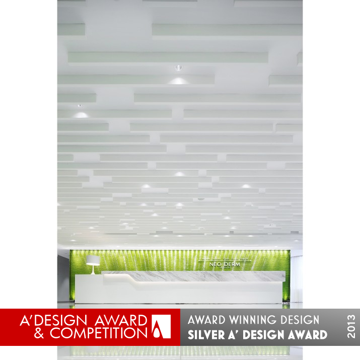 UNIQUE PROPERTIES / PROJECT DESCRIPTION: It is designed to resonate the theme of lines, and lime color highlights are just enough to demonstrate the dashy and energetic design brief for this particular skin care center. Beams of white dashing lines are running throughout the white ceiling and extending to the surrounding space with dynamics. The relaxation zone adjacent to the reception is set on a lime on lime color tone from furniture to carpet that emphasizes the young and rejuvenated brand essence by overviewing the Victoria harbor.