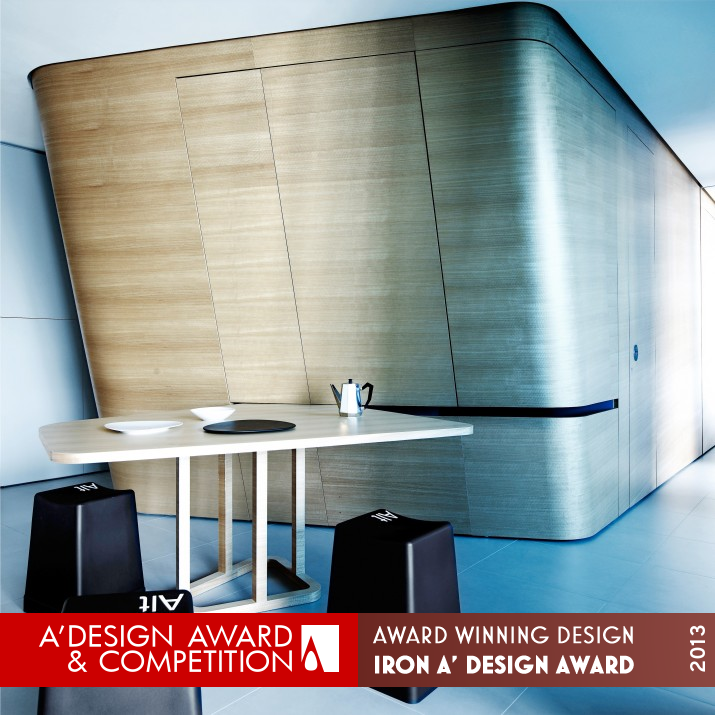 UNIQUE PROPERTIES / PROJECT DESCRIPTION: This concept is borne out of a desire to avoid the safe path of making storage spaces as unobtrusive as possible in a home. Based on the 'compartmentalisation' concept, a large unconventional box is used to free up the space with a dramatic effect.