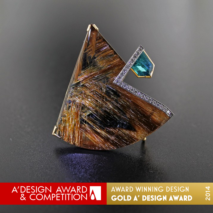 TAGS: victor syrnev; victorud.com; jewelry, jewelery, art, Iconic design, fancy cut, a splinter of the Sun, a brooch, Anastasia, with rutile quartz, jewelry Anastasia