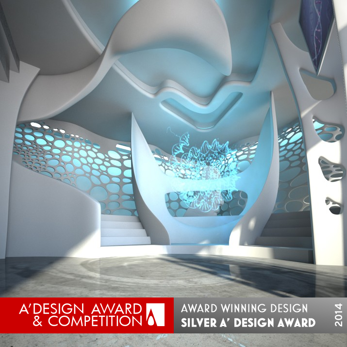 TEAM MEMBERS (7) : Peter Stasek architect - corportate architecture concept, Luana Kroner-Stasek architect - interior design, Linda Law, Executive Director of the Center for 4D Arts, New York, holography development, Alexey Porollo - Department of Environmental Health, Cincinnati, 3D DNA model, Stefan Möller - Licht-Center Speyer, Germany - illumination, Tobias Barz - visualization and
