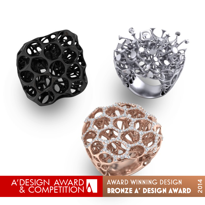 of organic pattern in nature and inside of human body turned into a gold ring and diamond ring to