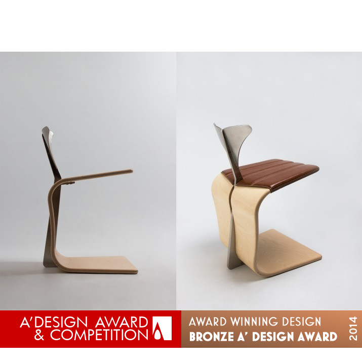 INSPIRATION: Tail chair is motivated from waves and whale tail above water surface. This motif was developed into simple form that two different materials are assembled. Each part consists of thin and wide surfaces to give understated look and feel the material feature.