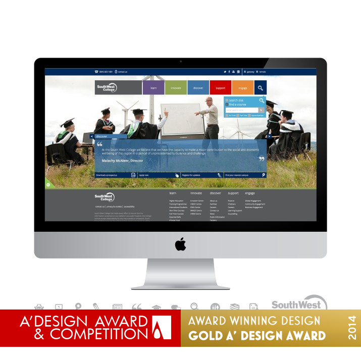 INSPIRATION: In trying to gain new students the first key tangible purpose of the site was to offer information on the courses available in a clear, easy to understand, and searchable way. Ease of use and increased visitors were the watchwords. With this in mind, we decided to implement a flat interface which presents a cleaner look that is characterised by presenting data in grids, extensive use of white space and adoption of solid colour palettes. This resulted in a minimalistic website which offers a cleaner look for content which is easier to scan and process.