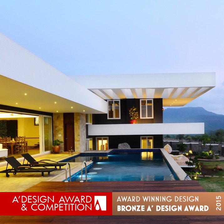 OPERATION / FLOW / INTERACTION: The spectacular view of the Khadakwasla backwaters is hidden from the gates till one reaches the living area which opens up to the panoramic sight beyond. Spaces opening to the pool create an effect of continuing the backwaters inside. The open plan of the house allows plenty of spaces that are visually connected to each other. The entry level has the porch, living, dining, open kitchen, kids room and the pool deck, master bedroom is at the upper level and the mothers room is at a lower level.