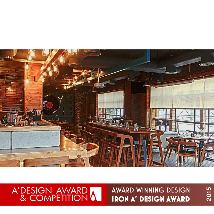 OPERATION / FLOW / INTERACTION: This pub has multiple areas for people to sit and enjoy a drink, each area is designed for different interactions, here we have a bar counter with seating for a small group facing which is a large table with high seating for a large group, lounge seating is provided near the stage along with outdoor seating in a mixed fashion of high and normal height chairs along side a high water fountain cascading down the side walls.