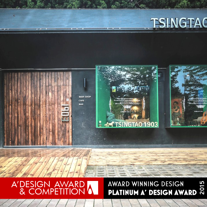 CHALLENGE: The challenge is to create an youthful space and at the same time it also needs to represent the historical values of Tsingtao beer brand. Under limited project budget and relatively small construction site, the creative idea is to design the bar, both internal and external, in a simple and geometry stereo segmentation style. A large entrance door is also used to weaken the division between the outside space and inside space.