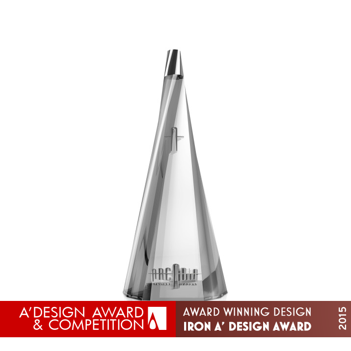 RESEARCH ABSTRACT: The arcAdia bottle is inspired by the luxury world and its correlated designs, as the concept focuses on the fashion and luxury markets, aming a simple and evocative design appeal. The research was also influenced by the ancient undisclosed worlds, iconic and mythological constructions, futuristic buildings. The strong “A” central character, mark of arcAdia, is linked up with the "Awen" glyph symbol that also in the modernity refers to the poetic and spitirual illumination.