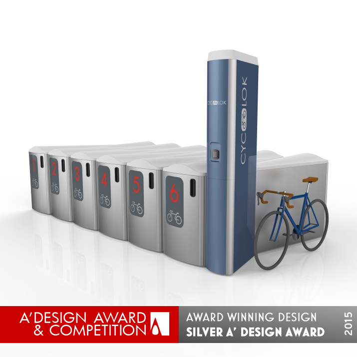 UNIQUE PROPERTIES / PROJECT DESCRIPTION: Cyc-lok is an innovative modular system designed to provide convenient and secure parking in public areas. This patented system consists of an array of interlocking wedges that can be arranged in a variety of ways depending on the site. The user books a parking space by smartphone, then uses a PIN to open an onsite locker for storage. The user can even use the accompanying smartphone app to view current parking capacity or book future capacity. Cyc-lok also connects seamlessly to corporate Bike-to-Work schemes, allowing large companies to offer secure on-site parking to their employees.