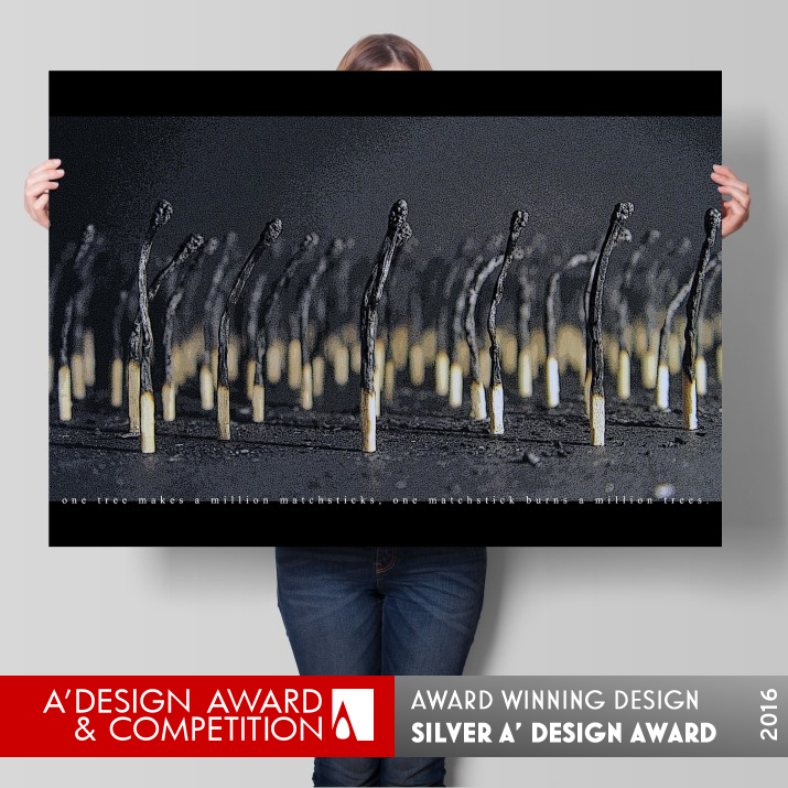 OPERATION / FLOW / INTERACTION: Comments from the international judges that awarded the posters the Gold Award in the competition: This work conveys a strong message about people wasting resources through the reckless exploitation and destruction of nature by depicting a forest with matches that have become useless. Conscious of what graphics as a two dimensional world can express, this series depicts a modern phenomenon with a profound message. This is an excellent piece of design vividly tying together philosophical thinking with an environmental issue confronting us.