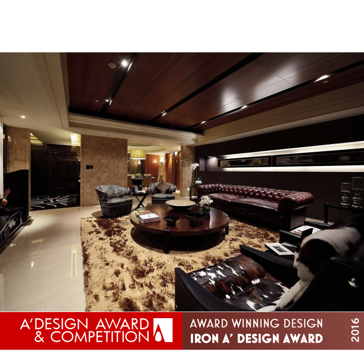 OPERATION / FLOW / INTERACTION: The lively and fashionable official residence-look of the overall design could bring out rich inspirations during every gathering, fulfilling the frequent social usage of the space. The specially-made stoned-walls underwent spontaneous cut-and-collage, and are balanced with the warmth of wood. At the center, the ceiling consists of 3D centric circles, harmoniously echoing its dome-like charisma to the round dining table. The designers even add a piece of glass at the edges of the double wooden doors, allowing the traveling of eyesight across the public and the private spaces. Looking out from the dining room, a statue with gray tenterhook could be seen, adding a touch of playfulness in between the visible and the invisible.