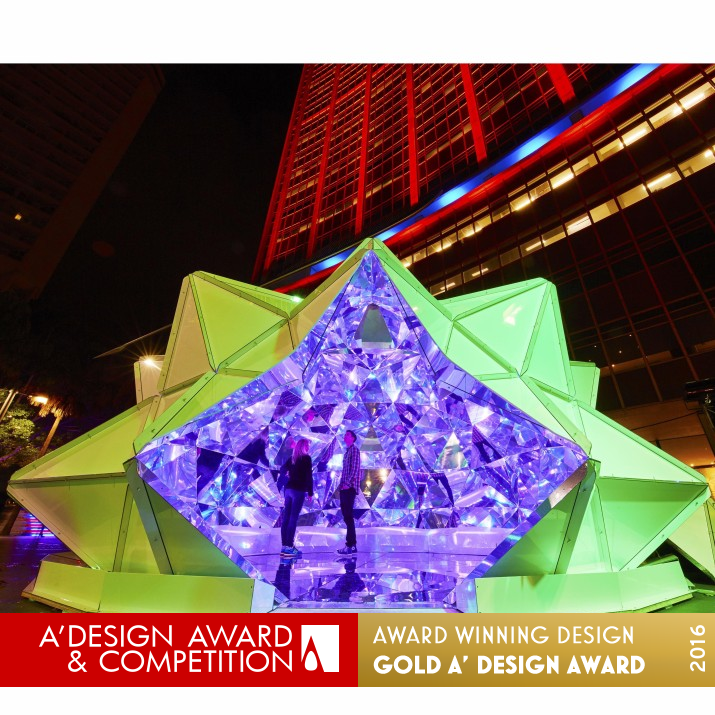 RESEARCH ABSTRACT: This is third prototype of 3D kaleidoscope. The second prototype "WINK SPACE" was received silver prize in A'design Award in 2014. Regarding of Light Origami, the most improved thing is free standing object. So this structure is stable even for public use. Although many solution was though, ACP is the best way to assemble. Because every structure, construction method and surface could be realized by only one way. It took 2days to assemble it.