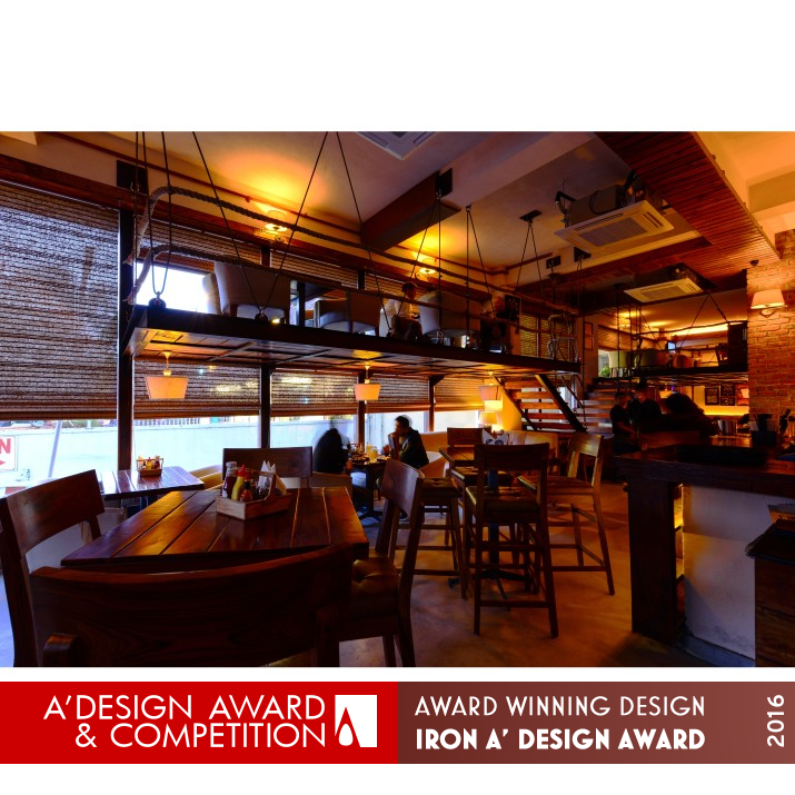 OPERATION / FLOW / INTERACTION: Entering into a large double height area, the space presents itself as a unique street wherein you have large brewery tanks to your right flanked by a long bar. Along with the bar is a perfect nook for a live pizzeria and smoking room. The pub space includes two bifurcating staircases that lead to two cosy mezzanines. The sitting options are open and breathy in the full-height areas, private on the mezzanines , and quite and cosy under the mezzanines.