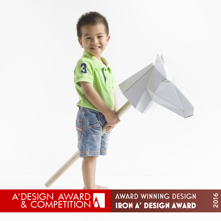UNIQUE PROPERTIES / PROJECT DESCRIPTION: Make it your own Polypony(from polygon and pony) cardboard stick horse, a fantastic resource to encourage role play and stimulate a child's imagination. It is an inventive and playful DIY toy you can make with kids. Parents and children have an opportunity to participate in the process by folding, matching the edges with corresponding number and embellishing the final form.
